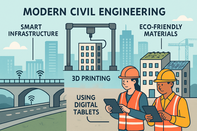 Civil engineering is undergoing a new era with the rapid adoption of advanced technologies and a focus on sustainability. This shift is transforming the design, construction, and management of infrastructure, creating more resilient, cost-effective, and sustainable environments for future generations. Land surveying services are crucial for accurate mapping, project management, and maintenance. As cities expand and infrastructure becomes more complex, the adoption of digital tools and materials is increasing, accelerating construction timelines, reducing operational costs, and mitigating environmental impacts. By integrating smart technologies and sustainable practices, civil engineering is advancing towards an efficient and environmentally responsible future for infrastructure development.