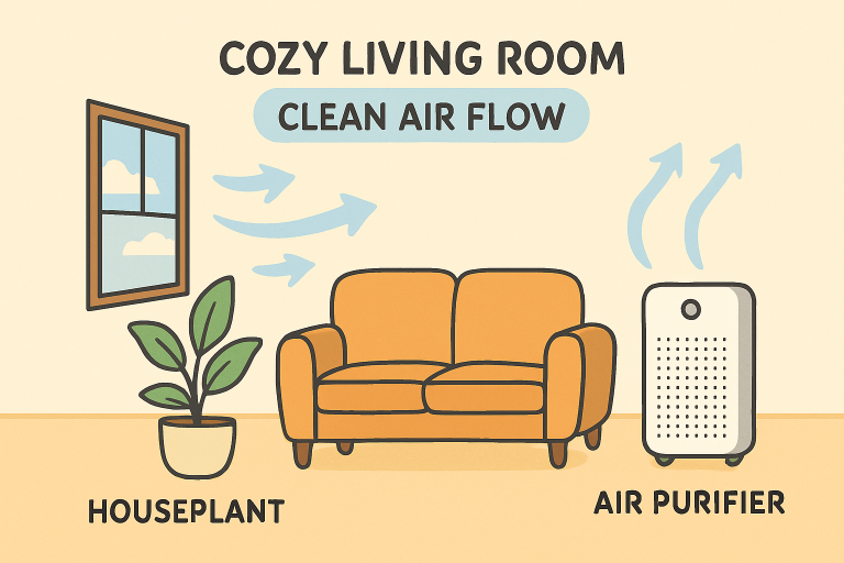 - Air purifiers and specific houseplants can further purify and filter the air in your living space.